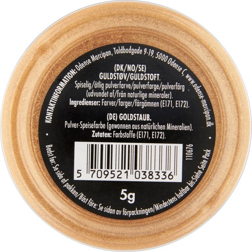 Odense Gold dust has no taste and is an edible decoration for all kinds of cakes and confectionery that need a festive boost. For example, use a brush when decorating your cakes and confectionery so you can easily dose the amount you want. You can also add a nice, shiny effect to, for example, chocolate with the beautiful gold dust.